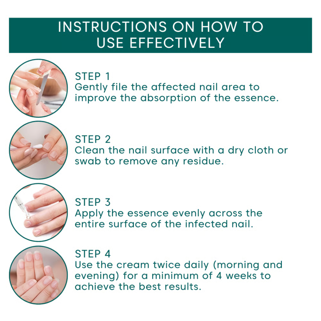 According to the manufacturer, we recommend using the Nail Care Pen up to three times a day (morning, noon & evening). To do this, you should first file the affected area with a glass file (disinfected) and remove brittle parts of the nail. Then apply the solution to the affected area and allow it to take effect.